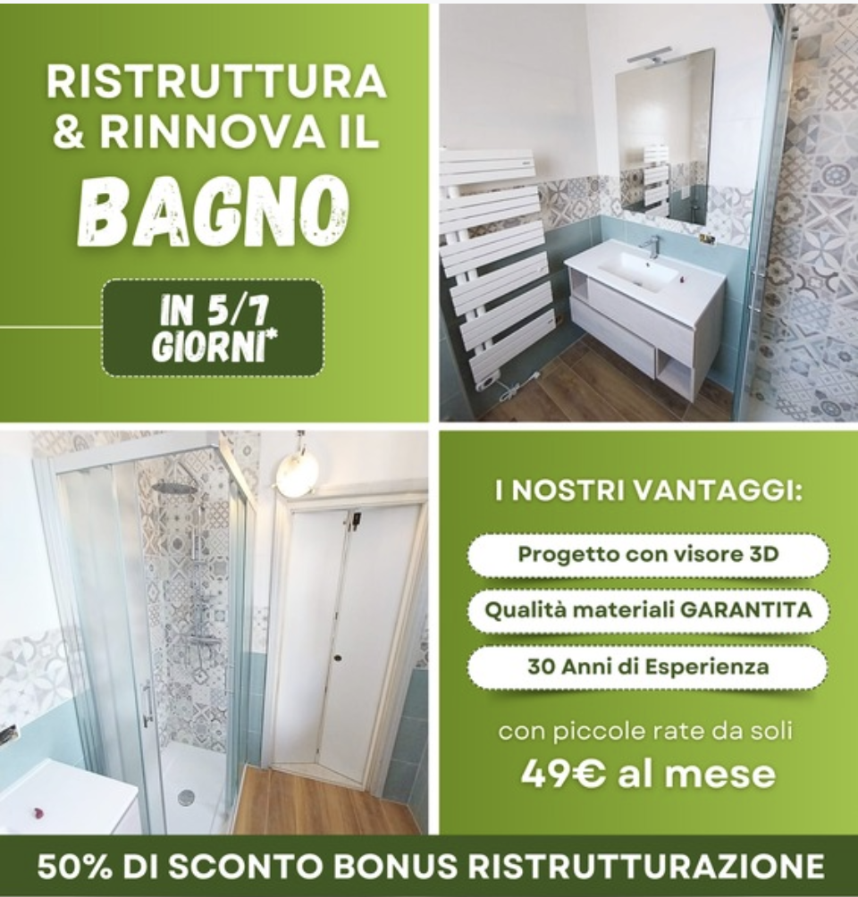 * Ristrutturiamo in soli 5/7 giorni lavorativi dall’inizio dei lavori (massimo entro 90 giorni dall’ordine)
